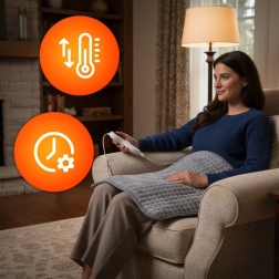 Dankzij 10 instelbare temperatuurniveaus (30–48 °C) kies je eenvoudig tussen milde warmte of intensievere verhitting. De timer met 3 keuzes (45/90/120 min) zorgt voor automatische uitschakeling voor veilig gebruik, zelfs als je indommelt.