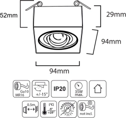 • Compatibiliteit: lampen MR16 of GU10 naar voorkeur