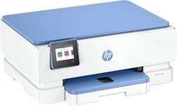 De praktische invoerlade voor 125 vellen en een aparte fotolade voor 15 vellen vereenvoudigen het mediabeheer. Het compacte formaat en het moderne design in wit met blauwe accenten passen in elk huishouden of kleine kantooromgeving.