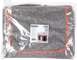 Stevige polyesterstof in grijze melange met contrasterende rits is duurzaam en stijlvol. Twee zijdelingse handgrepen maken dragen en uittrekken eenvoudig.