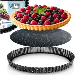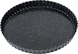 Deze ronde taartvorm met een diameter van 28 cm en een hoogte van 3 cm is ideaal voor het thuis bereiden van taarten, quiches en andere desserts en hartige taarten. De uitneembare bodem maakt het comfortabel en schoon lossen van de bodem mogelijk zonder de kwetsbare, geribde randen te beschadigen.