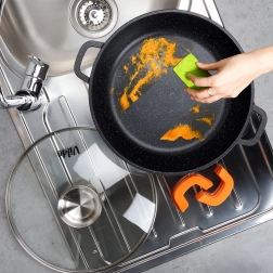 De duurzame granieten coating maakt koken met weinig vet mogelijk en is eenvoudig te reinigen – ook geschikt voor de vaatwasser.