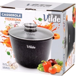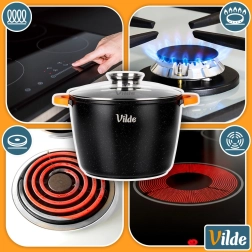 Universeel gebruik: gas, elektrisch, keramisch, inductie en oven tot 200 °C (zonder deksel). Origineel product van het merk VILDE uit de lijn TERRUNA AROMA.