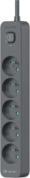 Houd orde en veiligheid in je stroomcentrum thuis. De overspanningsstekkerdoos TRACER Power Line+ beschermt tv, pc, consoles en laders dankzij betrouwbare overspanningsbeveiliging met absorptie tot 380 J en een indicatie van de status. Vijf geaarde stopcontacten maken gelijktijdige voeding van meerdere apparaten mogelijk zonder risico op overbelasting.