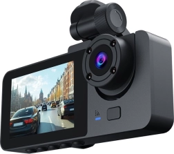De TRACER Halo 360D is een compacte dubbele dashcam, ontworpen voor complete voertuigbescherming. De hoofdcamera filmt de weg in Full HD 1920×1080, de secundaire interne camera in VGA 640×480 monitort de cabine. De bediening is eenvoudig dankzij het 3" IPS‑display met brede kijkhoeken en een overzichtelijk menu.