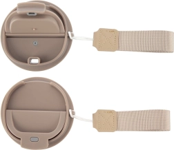 De deksel met veilige sluiting en siliconenafdichting minimaliseert het risico op lekken, terwijl de praktische polslus het dragen vergemakkelijkt. Voor maximaal thermisch effect raden we aan de beker voor te verwarmen/koelen met heet of koud water gedurende 5 minuten en te vullen tot ongeveer 90% van de inhoud.