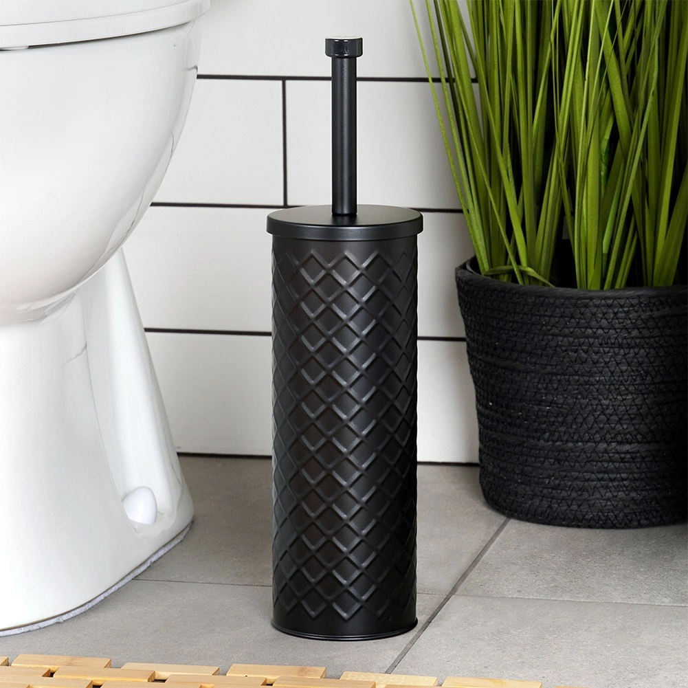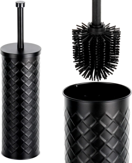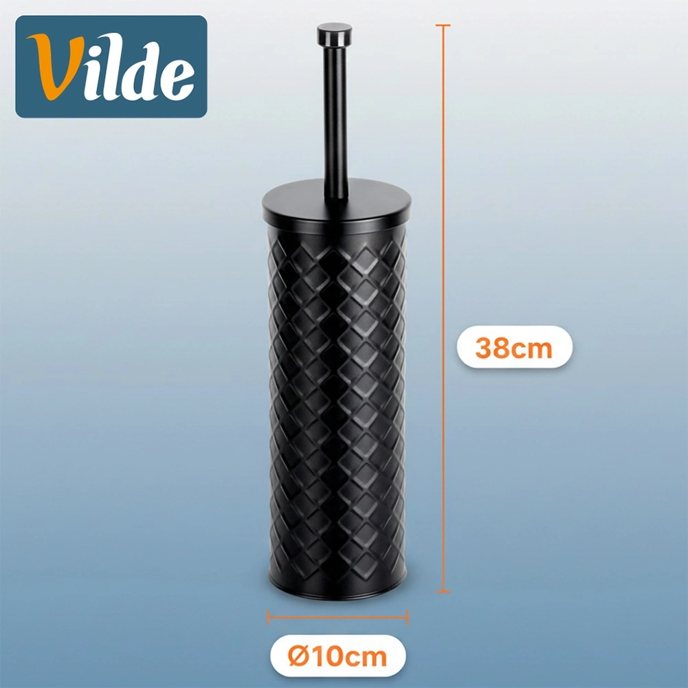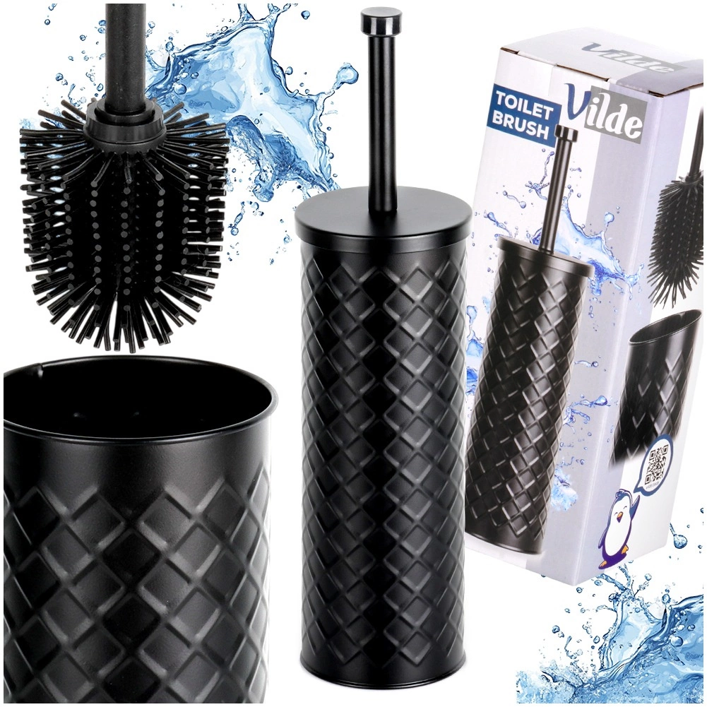 De matzwarte uitvoering met elegant diamantreliëf geeft de badkamer een moderne look. De metalen constructie is stevig en stabiel, de handgreep ligt prettig in de hand. De verwisselbare, opschroefbare reinigingskop verlengt de levensduur van de hele set.