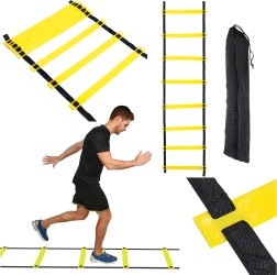 De professionele coördinatieladder van 6 m is een onmisbaar hulpmiddel voor effectieve speed & agility-training. Contrasterende gele sporten zijn goed zichtbaar, het platte profiel minimaliseert het risico op struikelen en verstelbare tussenafstanden laten je de drills precies op jouw doelen afstemmen. Het lichte ontwerp en de mogelijkheid om op te vouwen zorgen voor eenvoudig transport en gemakkelijke opslag.