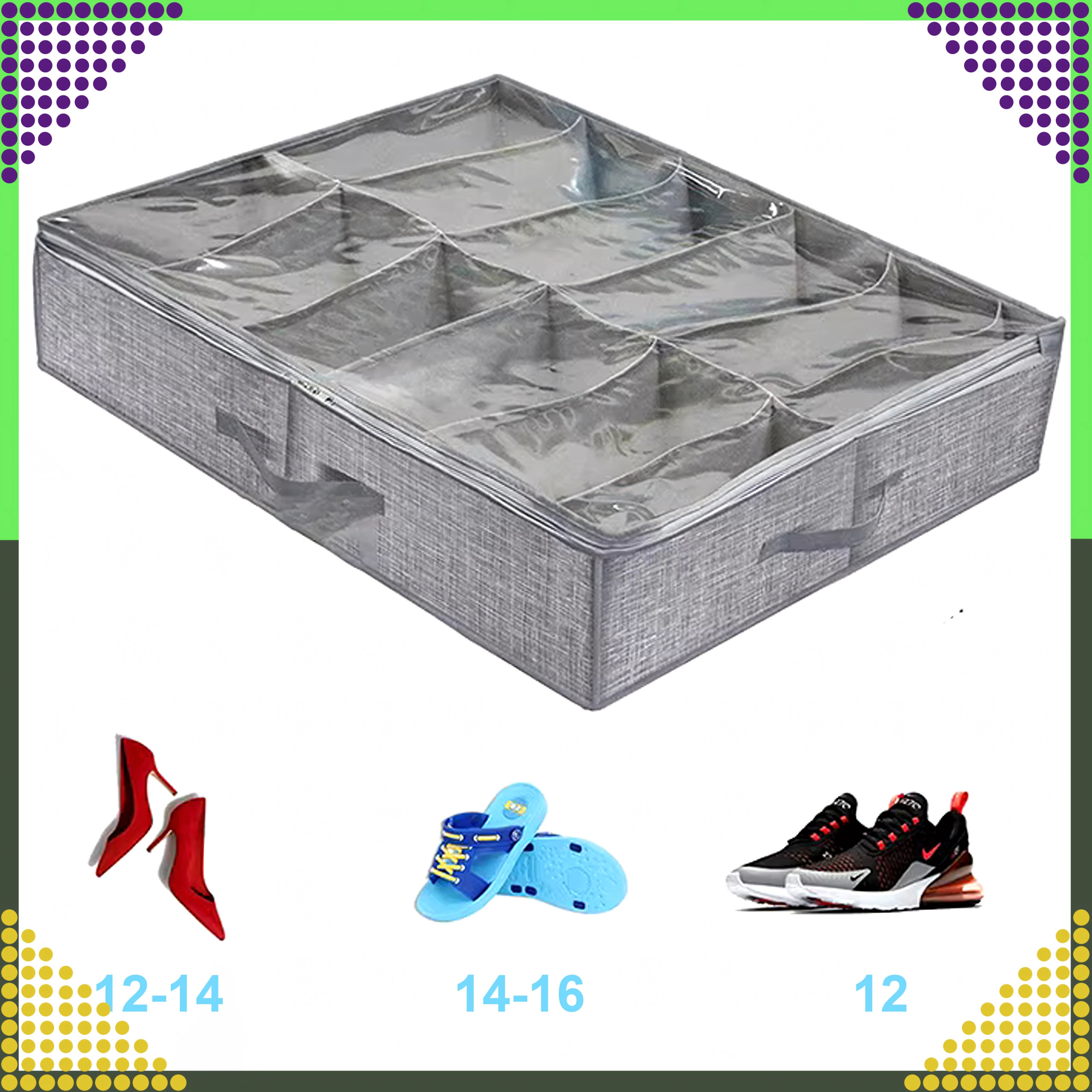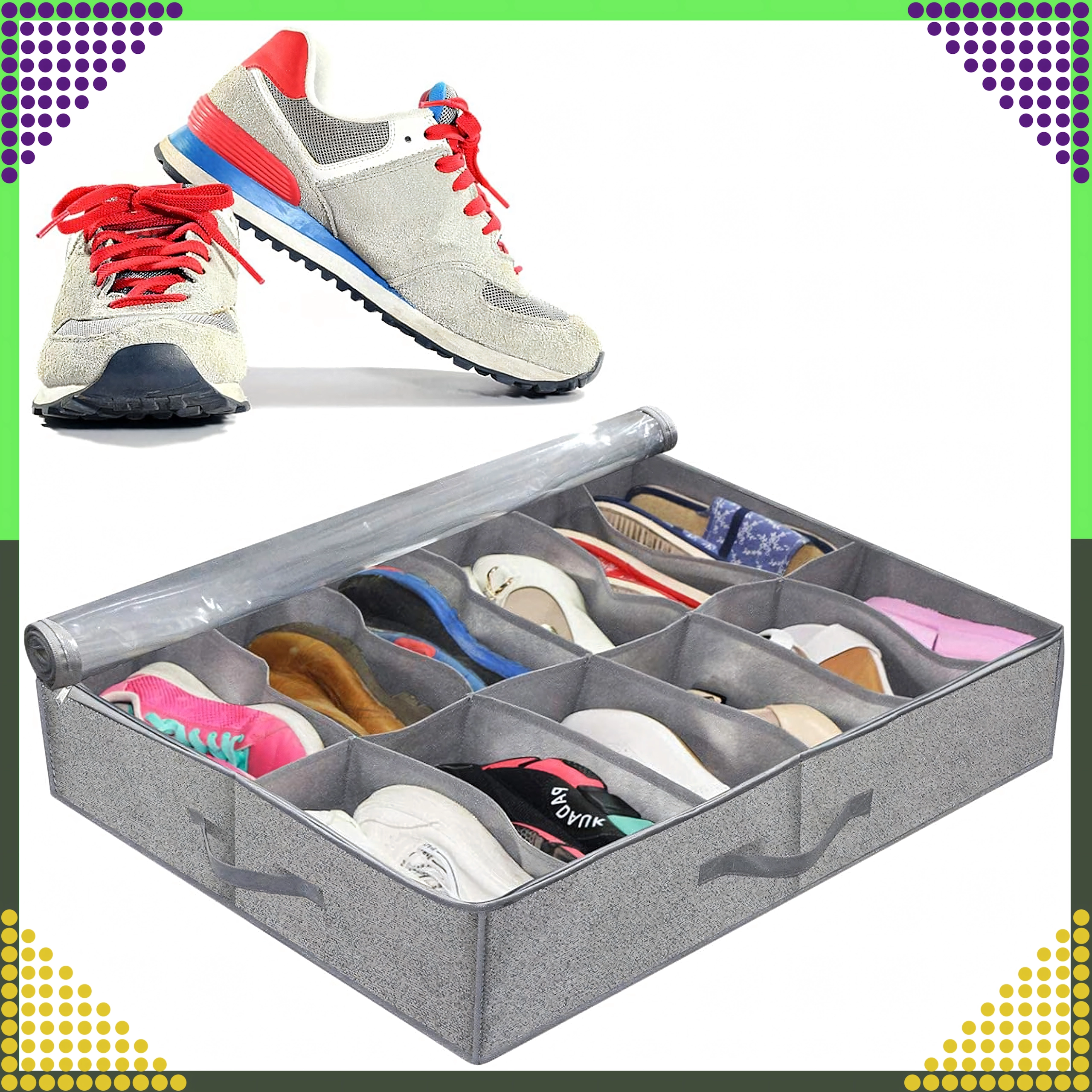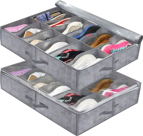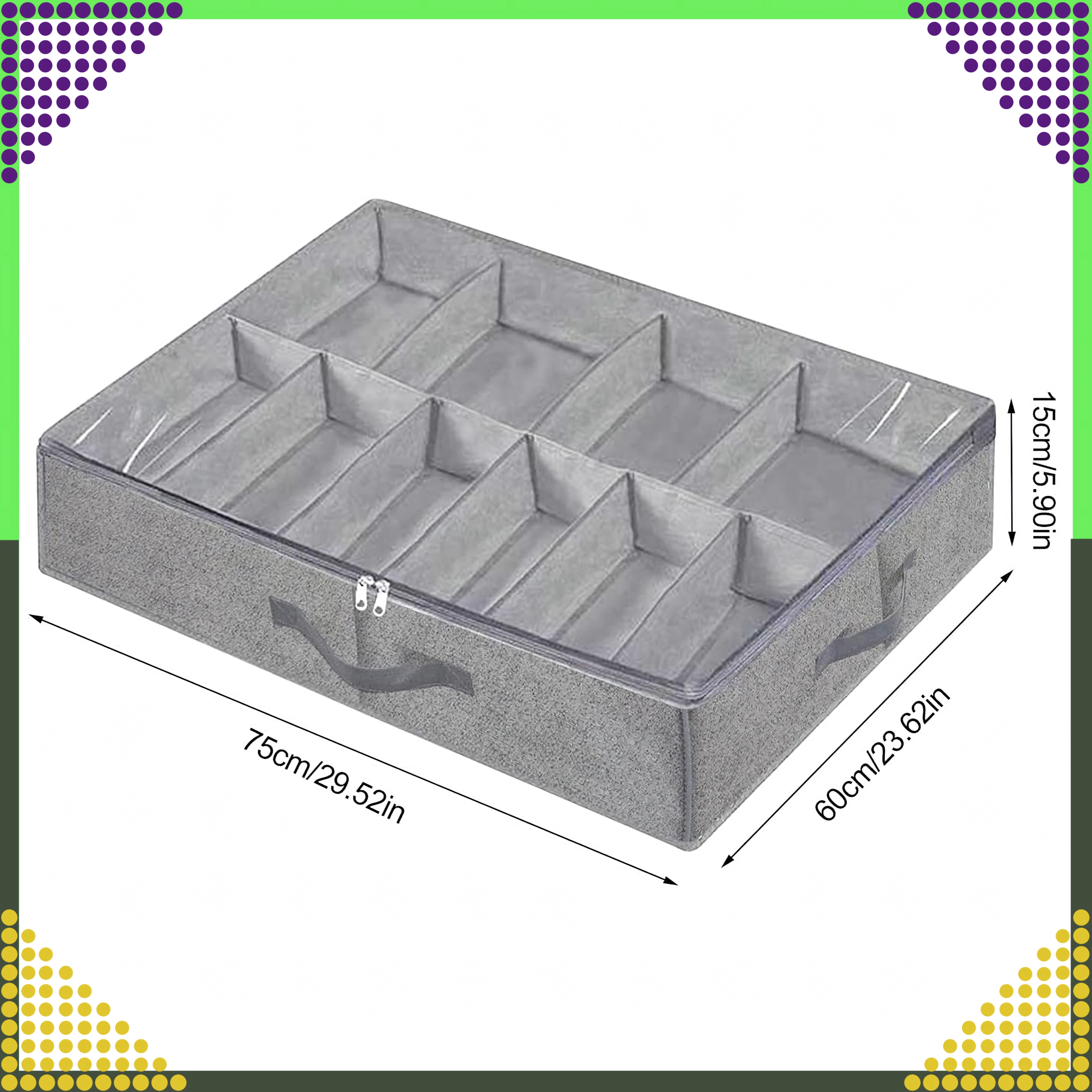 De grijze schoenenorganizer voor onder het bed is een slimme oplossing om schoenen en accessoires schoon, stofvrij en altijd binnen handbereik te houden. Dankzij het lage profiel schuift hij gemakkelijk onder de meeste bedden en neemt hij in de kast minimaal ruimte in. Het transparante ritsdeksel laat je onmiddellijk zien wat erin zit, zonder te hoeven openen.