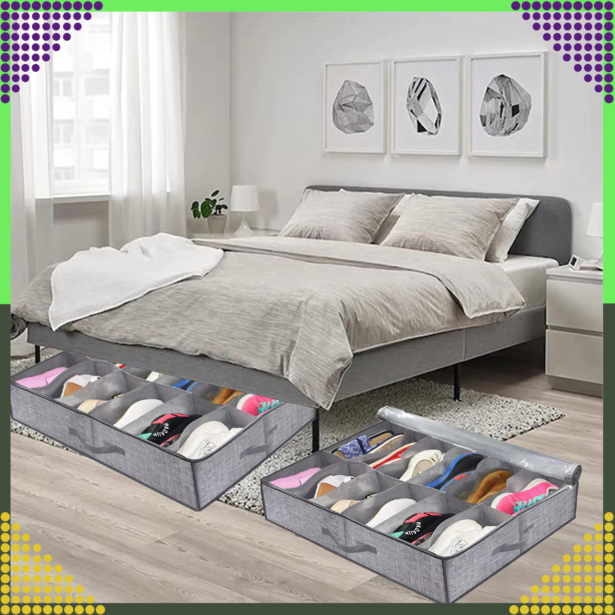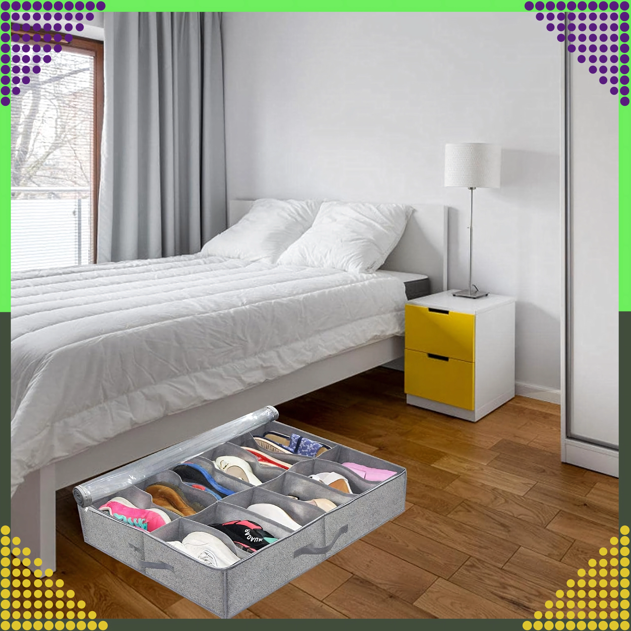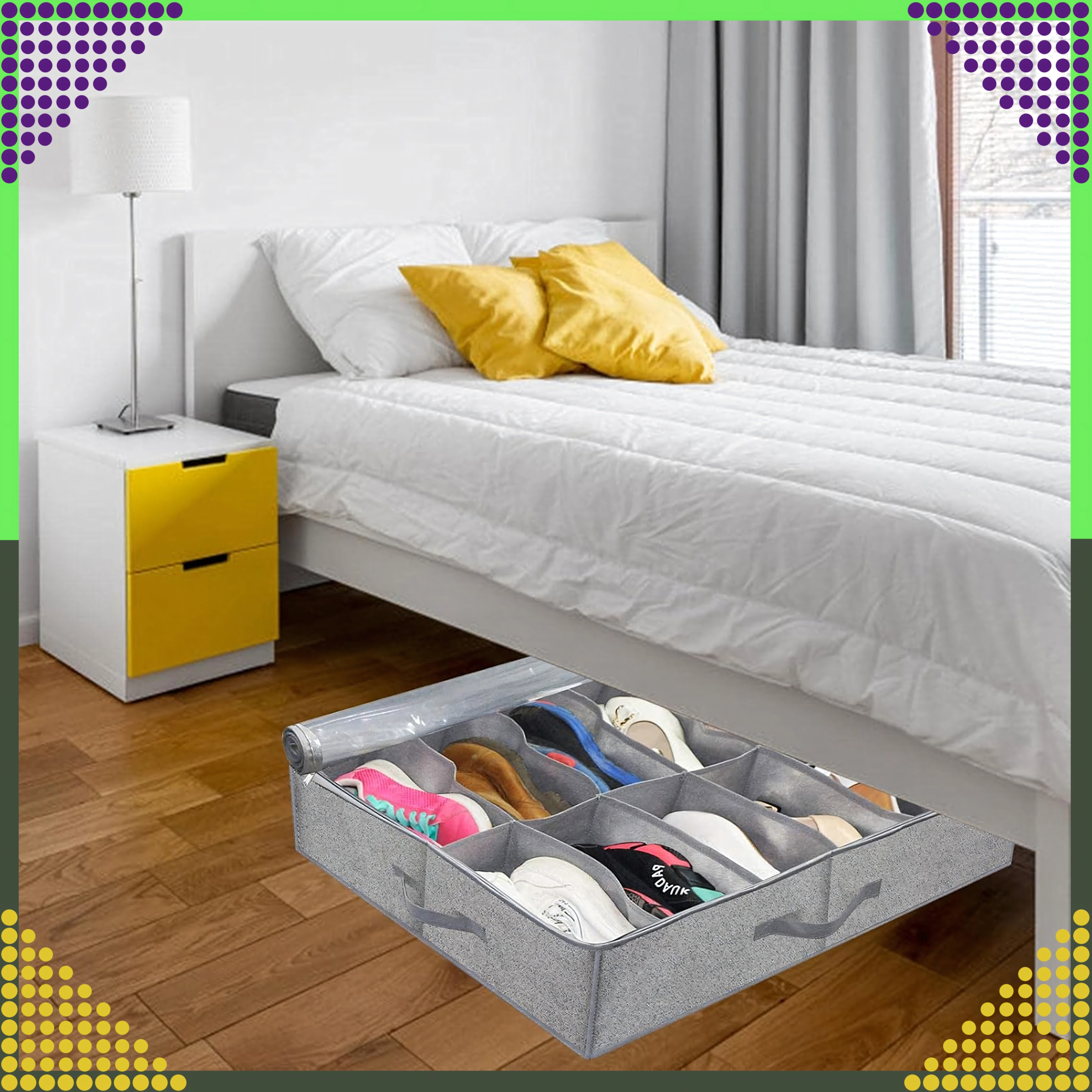 De grijze schoenenorganizer voor onder het bed is een slimme oplossing om schoenen en accessoires schoon, stofvrij en altijd binnen handbereik te houden. Dankzij het lage profiel schuift hij gemakkelijk onder de meeste bedden en neemt hij in de kast minimaal ruimte in. Het transparante ritsdeksel laat je onmiddellijk zien wat erin zit, zonder te hoeven openen.