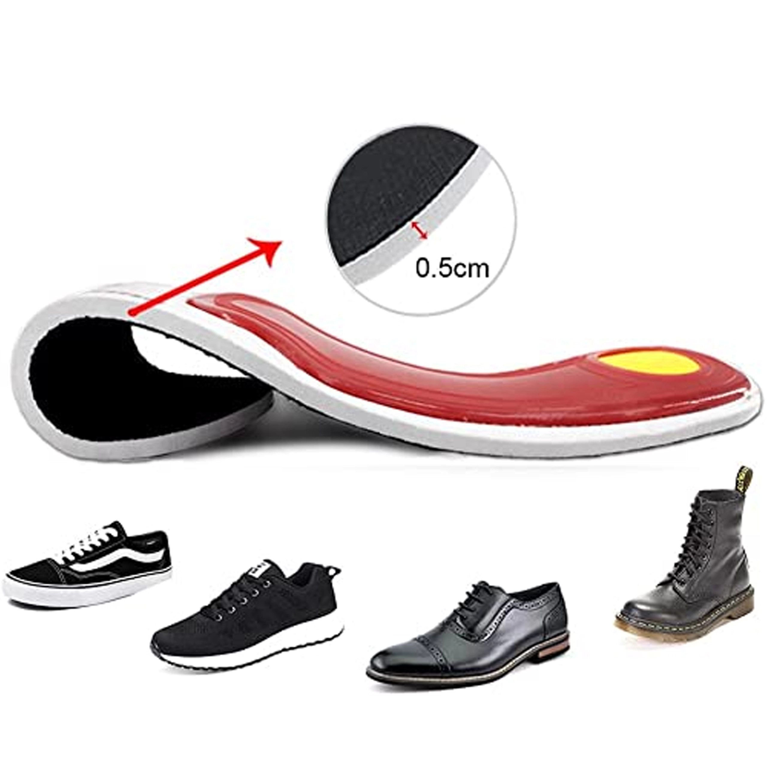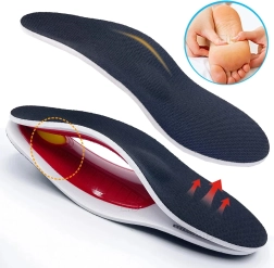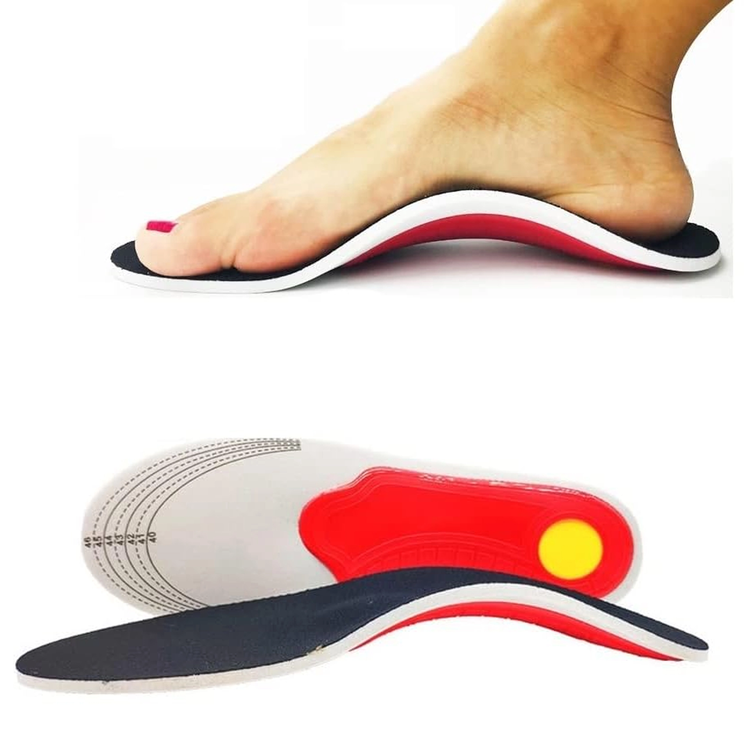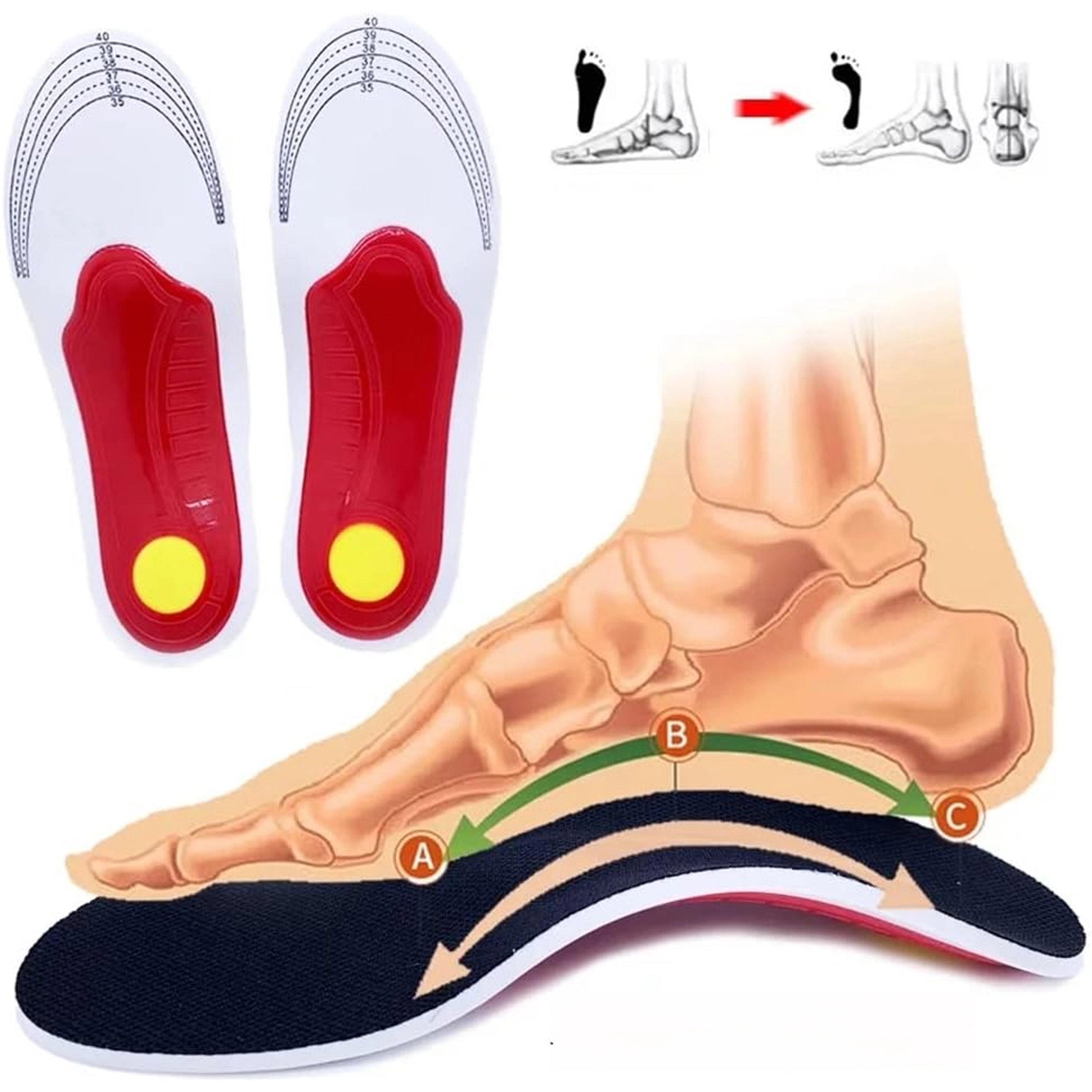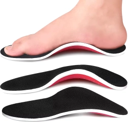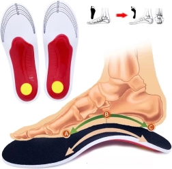Orthopedische inlegzolen met ergonomische vorm ondersteunen op natuurlijke wijze de lengteboog en het metatarsale gebied, waardoor overbelasting van de voorvoet wordt verminderd en verergering van platvoeten wordt voorkomen. De meerlagige constructie met demping in de hiel en de middenvoet absorbeert schokken en helpt de lichaamshouding en het algemene comfort bij elke stap te verbeteren.
