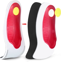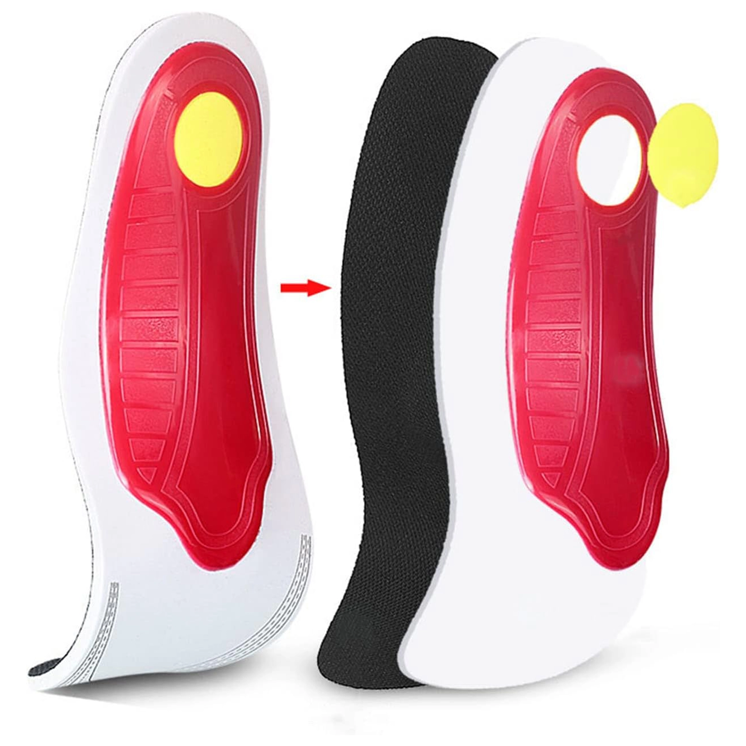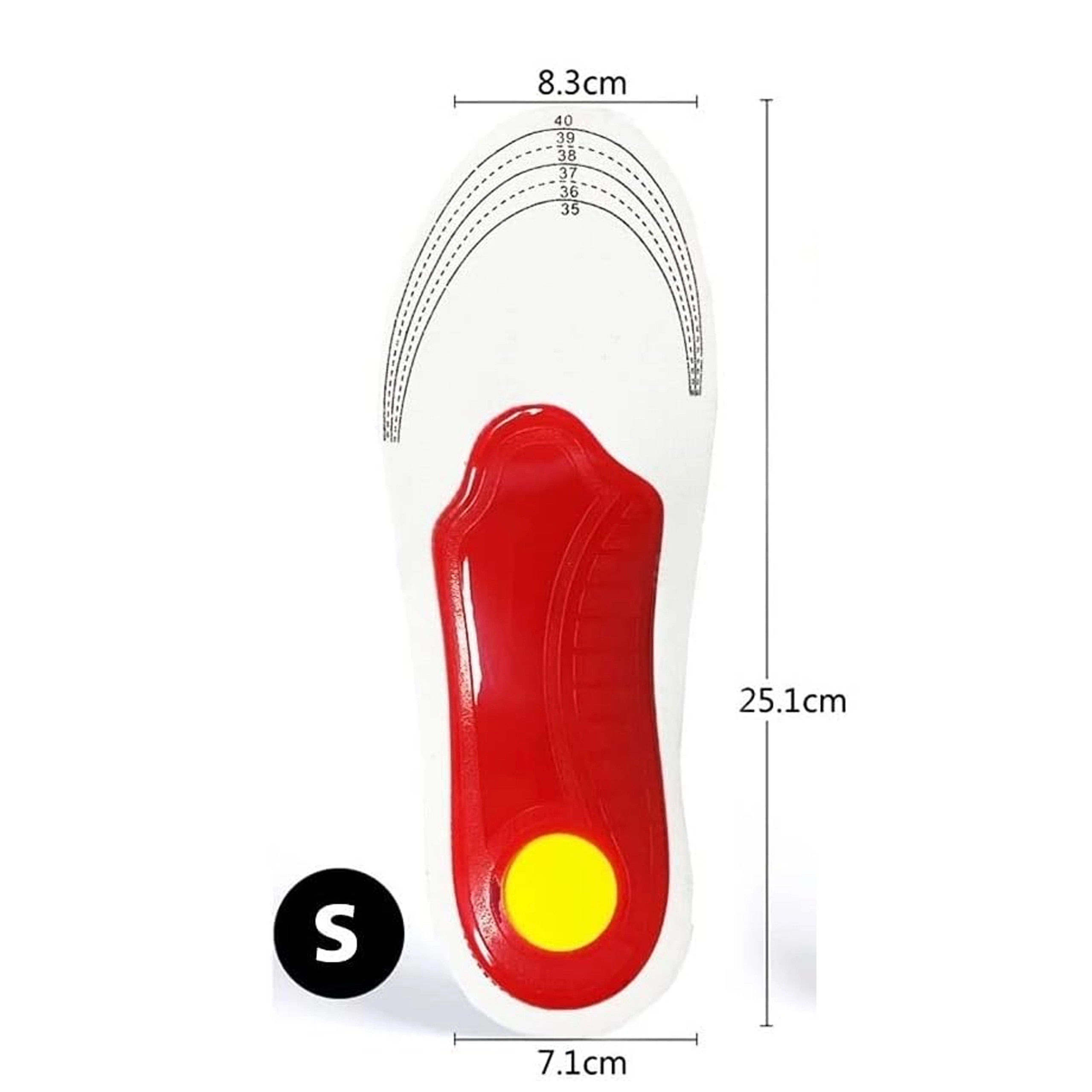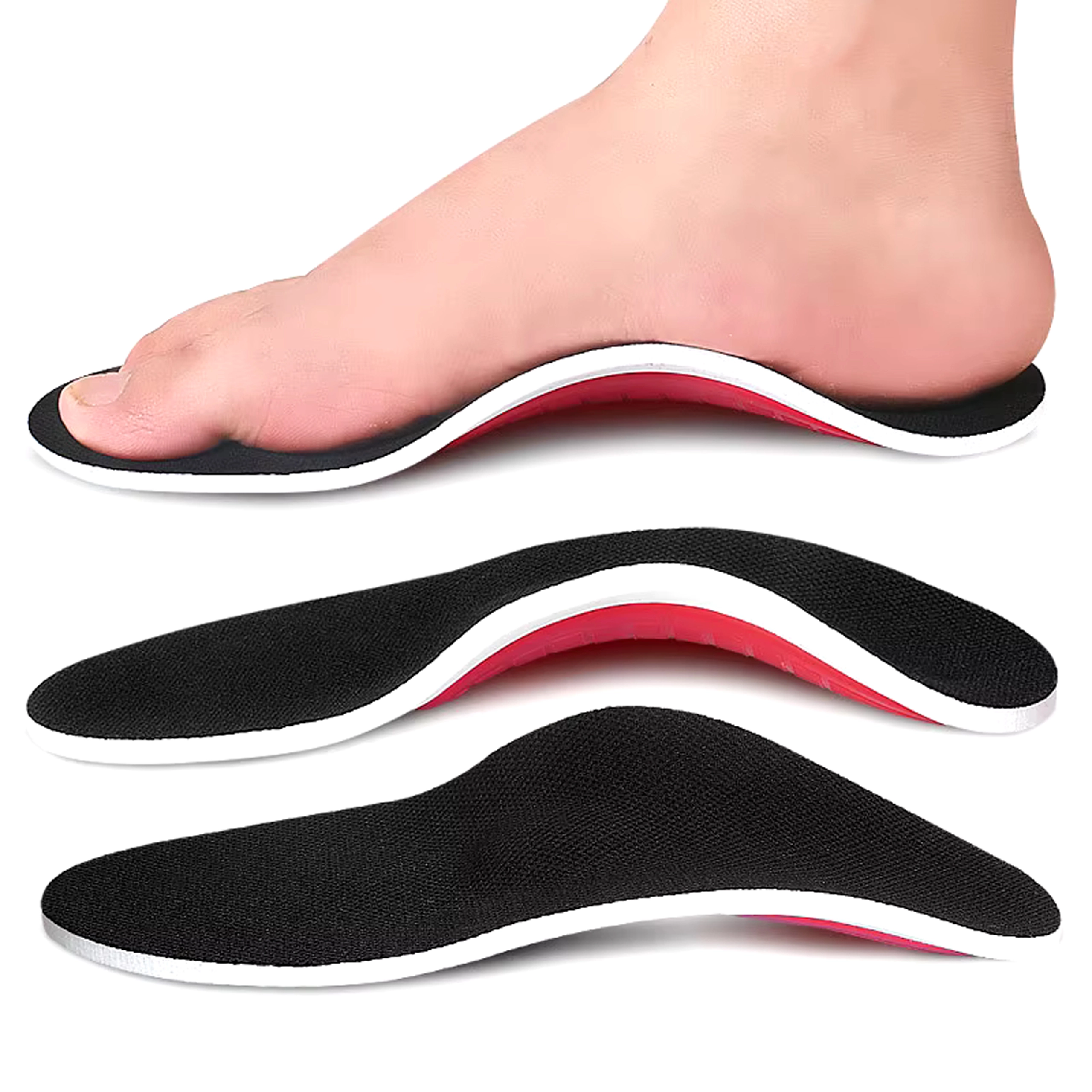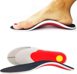 Orthopedische inlegzolen met ergonomische vorm ondersteunen op natuurlijke wijze de lengteboog en het metatarsale gebied, waardoor overbelasting van de voorvoet wordt verminderd en verergering van platvoeten wordt voorkomen. De meerlagige constructie met demping in de hiel en de middenvoet absorbeert schokken en helpt de lichaamshouding en het algemene comfort bij elke stap te verbeteren.