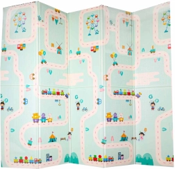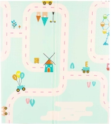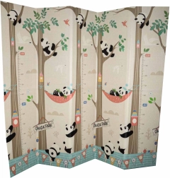 De dubbelzijdige schuimmat met afmetingen 180 × 200 × 1 cm creëert een veilige en comfortabele speelplek voor spelen, de eerste omdraaiingen en kruipen. Het dichte XPE-schuim dempt schokken, beschermt tegen koude vloeren en de antisliptextuur zorgt voor stabiliteit tijdens beweging. De ene zijde met schattige panda’s en de andere met een wegenmotief ondersteunen fantasie en leren.