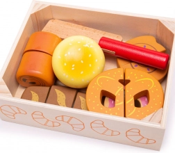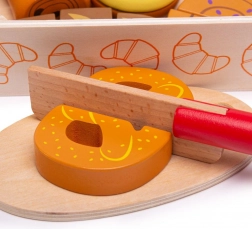 We presenteren een houten snijset voor gebak die is ontworpen voor alle kinderen die de betovering van de keukenwereld willen ontdekken. Deze kleurrijke set bevat verschillende vormen van gebak zoals croissants, donuts en broodjes, die kunnen 2worden gesneden2 met het bijgeleverde houten mes. De speelgoedonderdelen zijn gemaakt van kwalitatief hoogwaardig hout en verbonden met klittenband, wat interactieve en realistische speeltijd mogelijk maakt.