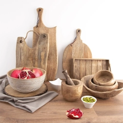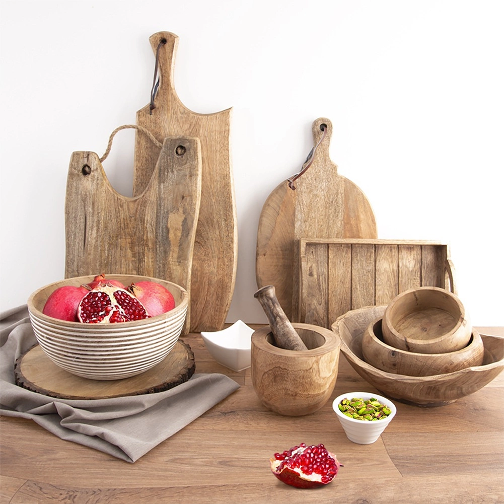 Het exotische hout van de mangoboom is sterk, bestand tegen vocht en eenvoudig te onderhouden. Elke kom heeft een unieke nerf en warme tint.