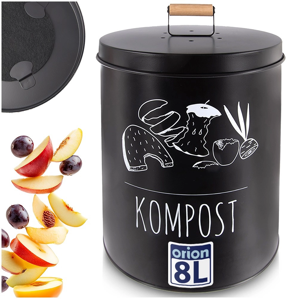 Stijlvolle keukencompostbak van 8 l in elegante zwarte kleur, ideaal voor het scheiden van gft-afval direct in de keuken. Dankzij het vervangbare filter met actief kool absorbeert hij geuren effectief, heeft een stevige metalen behuizing en een houten handgreep voor comfortabel dragen. Het goed afsluitende deksel beperkt de toegang van insecten en houdt zowel orde als frisse lucht in huis.