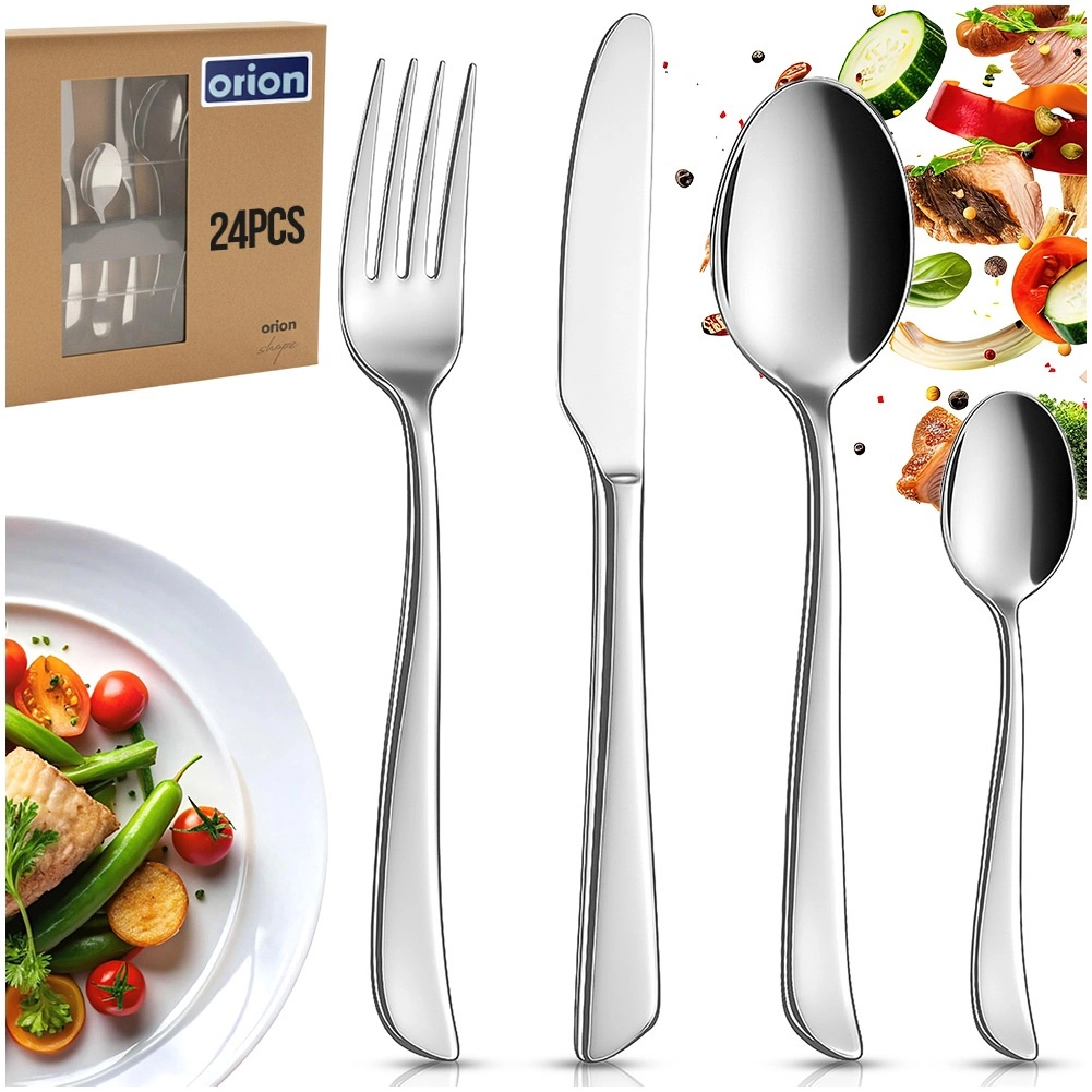 Een elegante bestekset voor 6 personen met 24 delen van hoogwaardig roestvrij staal met een glanzende afwerking. Duurzaam roestvrij staal, tijdloos design en eenvoudig onderhoud, inclusief vaatwasserbestendig, maken dit de ideale keuze voor dagelijks tafelen en feestelijke gelegenheden.
