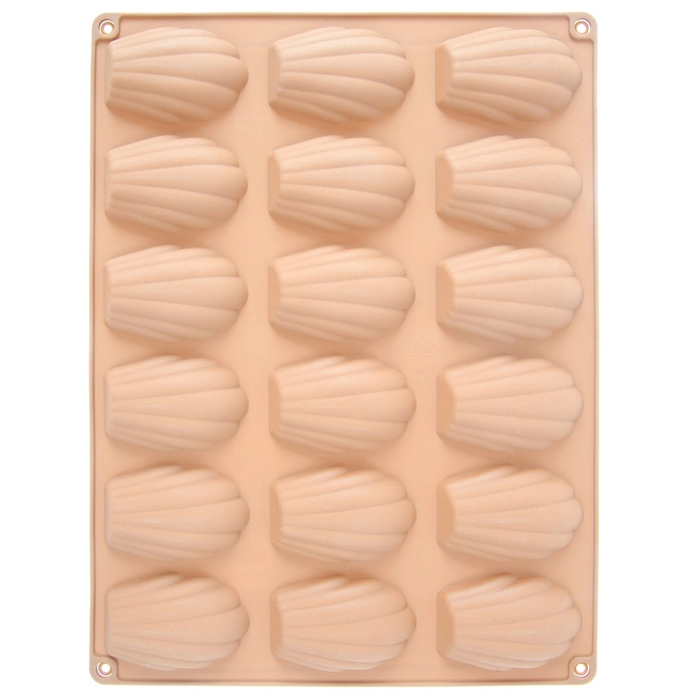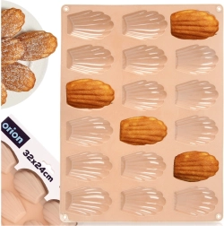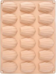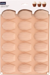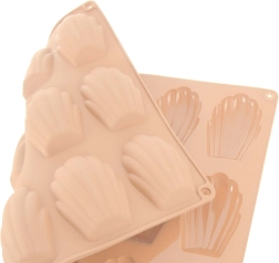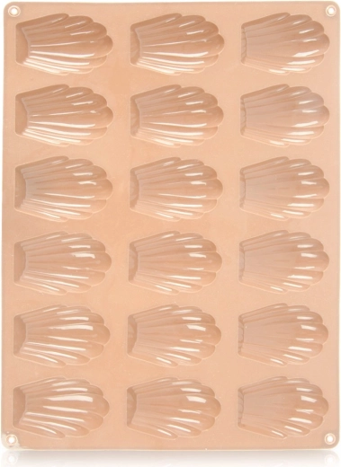 Deze beige siliconen vorm is ideaal voor het bakken van de populaire Franse madeleines en voor het maken van zelfgemaakte chocolaatjes en pralines in schelpvorm. Het oppervlak is van nature antiaanbak, waardoor invetten met boter of bestuiven met bloem niet nodig is – de afgewerkte stukjes haalt u eenvoudig uit de vorm zonder de vorm te beschadigen.