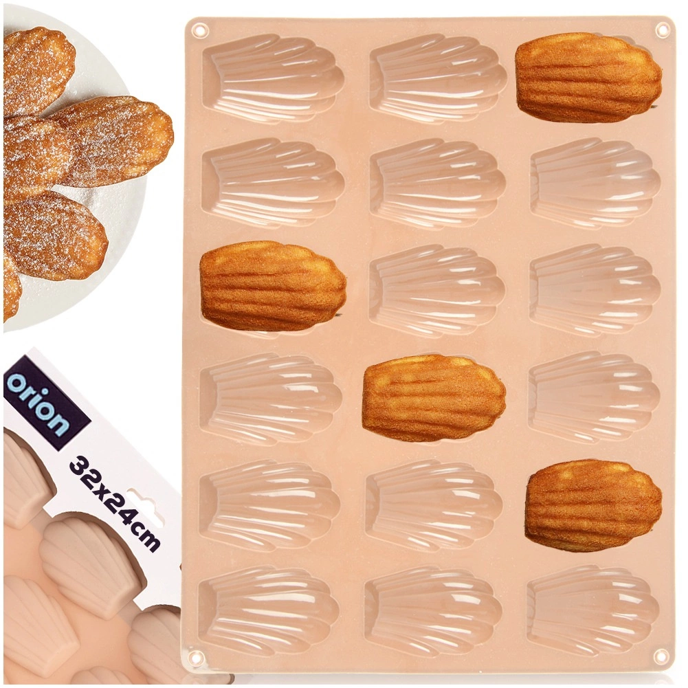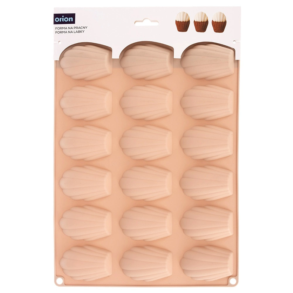 Praktische siliconen bakvorm voor madeleines en pralines waarmee u tot 18 stuks tegelijk kunt bereiden. Dankzij de antiaanbak-siliconen lost het deeg gemakkelijk zonder invetten, de vorm is licht en flexibel, hittebestendig tussen -40 °C en +220 °C en geschikt voor oven, magnetron en vriezer. Voor eenvoudig onderhoud is hij vaatwasmachinebestendig. Beproefde kwaliteit van ORION.