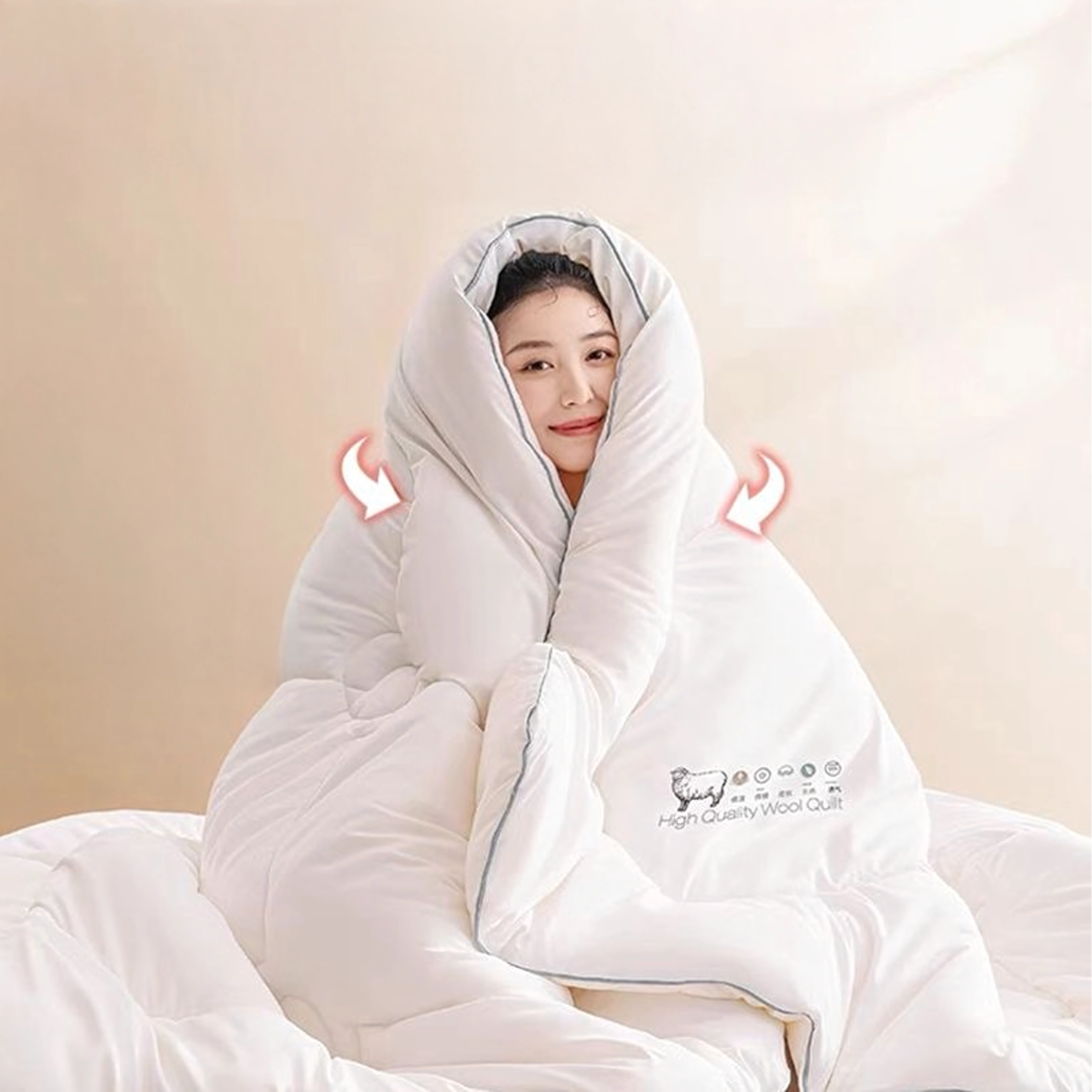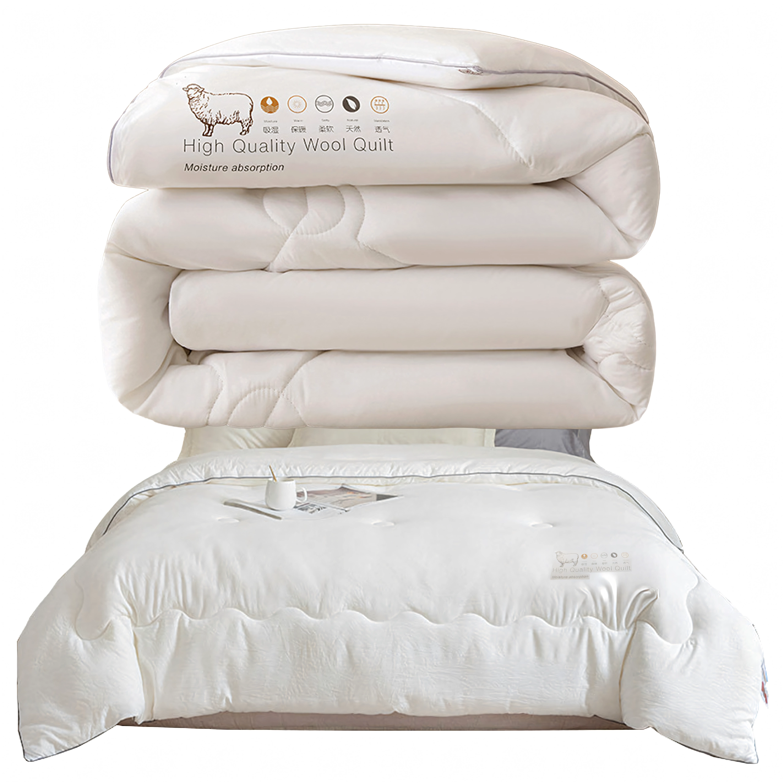 Wollen vezels zijn sterk, duurzaam en hebben van nature antistatische en zelfreinigende eigenschappen. De deken is licht maar warm, met eenvoudig onderhoud en betrouwbare prestaties gedurende de winter.