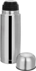Deze elegante roestvrijstalen thermosfles in zilverkleur is ontworpen voor dagelijks gebruik. Dankzij de hoogwaardige isolatie blijft koffie, thee en water lange tijd op temperatuur. Externe elementen van duurzaam plastic verhogen het comfort van vasthouden en beschermen tegen oververhitting.
