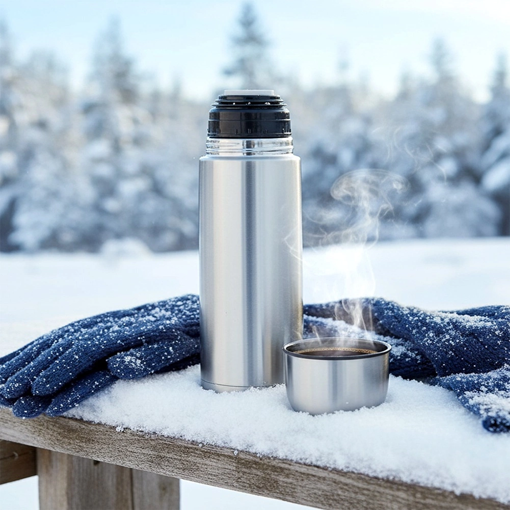 De slimme druksluiting maakt schenken mogelijk zonder de dop volledig los te draaien, zodat de drank langer op de ideale temperatuur blijft. De dop fungeert tevens als praktisch kopje – perfect tijdens het reizen, een wandeling of bij outdooractiviteiten.