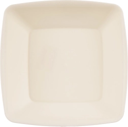 Vierkante diepe borden in crèmekleur zijn eenvoudig stapelbaar, besparen ruimte en zijn bestand tegen stoten en vallen.