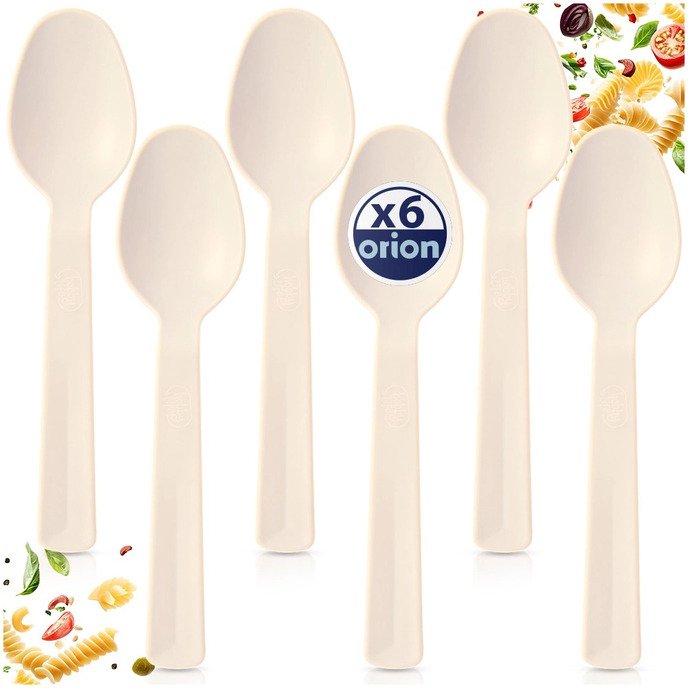 De set van 6 eetlepels SANDY in een elegante crèmekleur is een betrouwbare keuze voor dagelijks tafelen, picknicks en kamperen. Dankzij de hoogwaardige kunststof zijn ze licht, maar toch stevig en bestand tegen barsten en krassen. Elke lepel heeft een lengte van 14 cm, geschikt voor zowel volwassenen als kinderen.