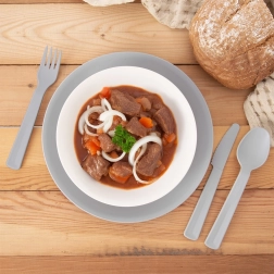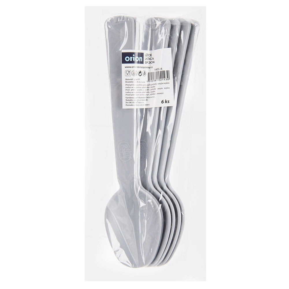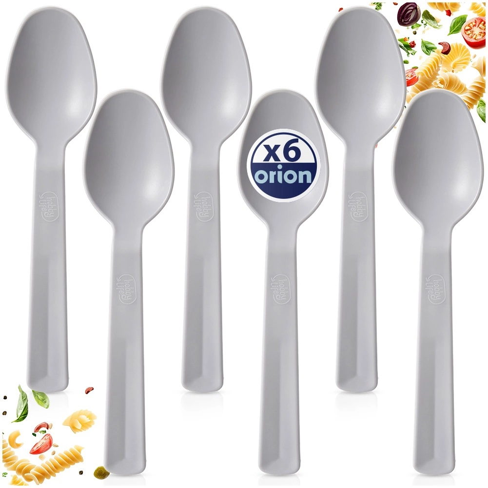De set van 6 grijze plastic lepels is een ideale keuze voor dagelijks gebruik en reizen. Dankzij de kwalitatieve afwerking zijn de lepels licht, maar tegelijk sterk en bestand tegen barsten en krassen. De ergonomische vorm zorgt voor comfortabel opscheppen van soepen, desserts en bijgerechten.