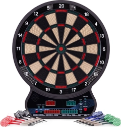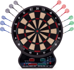 Breng een portie plezier en competitie in huis, kantoor of gamezone. Dit elektronische dartbord combineert nauwkeurige registratie van treffers, intuitieve bediening en een brede keuze aan spelmodi. Dankzij twee LCD-schermen heb je overzicht over de score en de actieve speler, terwijl spraakprompts het spel vlot laten verlopen.