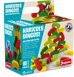 Jeujura gekleurde boontjes is een slim en leuk houten spel dat de handigheid van jong en oud op de proef stelt. Het doel is om de boontjes op elkaar te stapelen zodat elk nieuw boontje een andere kleur heeft dan het paar eronder. Eenvoudige regels, maar verrassend spannend voor het hele gezin.