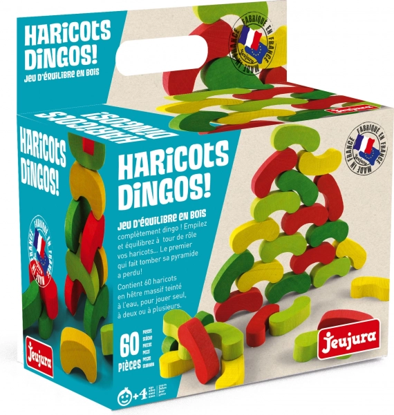 Leuk balansspel voor kinderen vanaf 4 jaar dat de fijne motoriek, concentratie en het geduld ontwikkelt. Leg de boontjes zo neer dat elk volgend boontje een andere kleur heeft dan het paar eronder – wie de toren laat vallen, verliest. Kwalitatieve houten uitvoering van beuken- en grenenhout, gemaakt in Frankrijk, met een afwerking op waterbasis en ecologische verpakking.