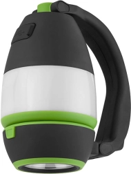 Schakel tussen handzame zaklamp, kampeerlantaarn en tafellamp. De inklapbare/draaibare beugel maakt comfortabel dragen, ophangen en stabiel neerzetten mogelijk.