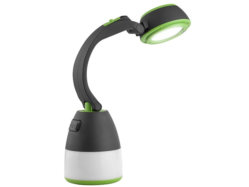 De ingebouwde 1500 mAh accu zorgt voor tot 6 uur gebruik. De lichtopbrengst van 200 lumen biedt heldere en gelijkmatige verlichting tijdens het kamperen en werken.