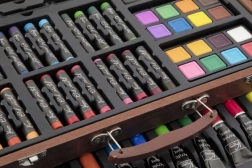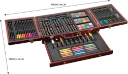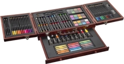 Deze rijk uitgeruste creatieve set van 103 stuks in een stevige houten koffer biedt alles wat je nodig hebt voor tekenen en schilderen. Dankzij de overzichtelijke vakken heb je alle hulpmiddelen altijd bij de hand en kun je je volledig concentreren op het creëren. Ideaal voor een thuisatelier, schoolprojecten en als geschenkset.