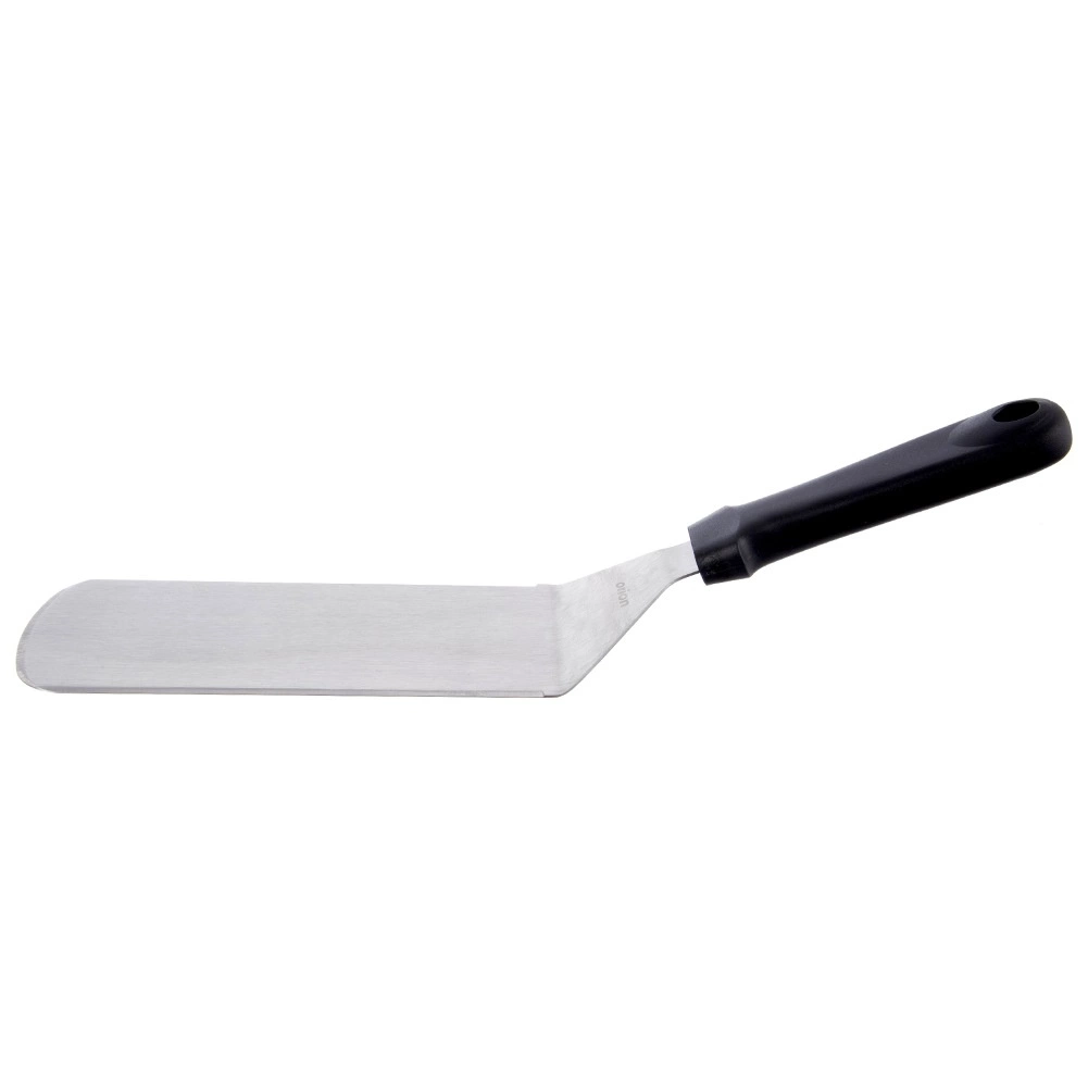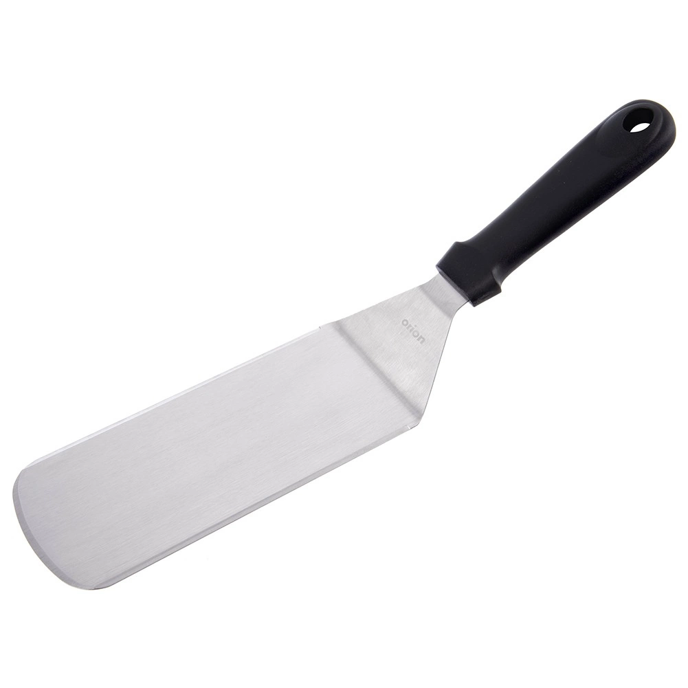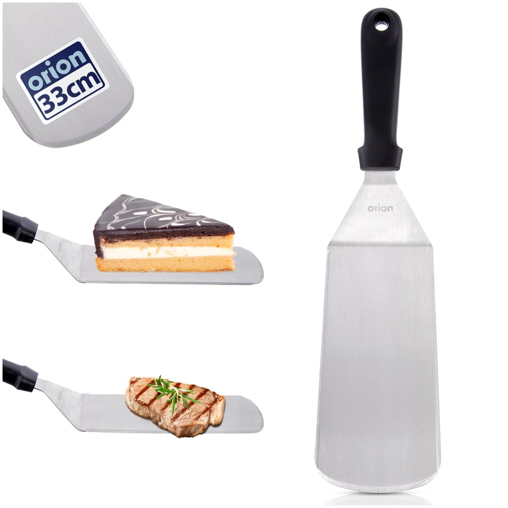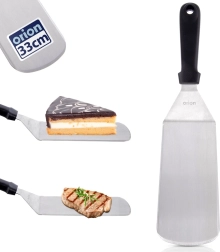 De stabiele, platte lemmet van roestvrij staal schuift gemakkelijk onder het gerecht en maakt veilig omdraaien van grotere porties mogelijk zonder uit elkaar te vallen.