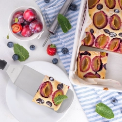 Dankzij de geslepen randen portioneer en verplaats je bereide gerechten gemakkelijk direct uit de pan of van de bakplaat. De materialen zijn hittebestendig en geschikt voor dagelijks koken. Het onderhoud is eenvoudig – de spatel kan in de vaatwasser.
