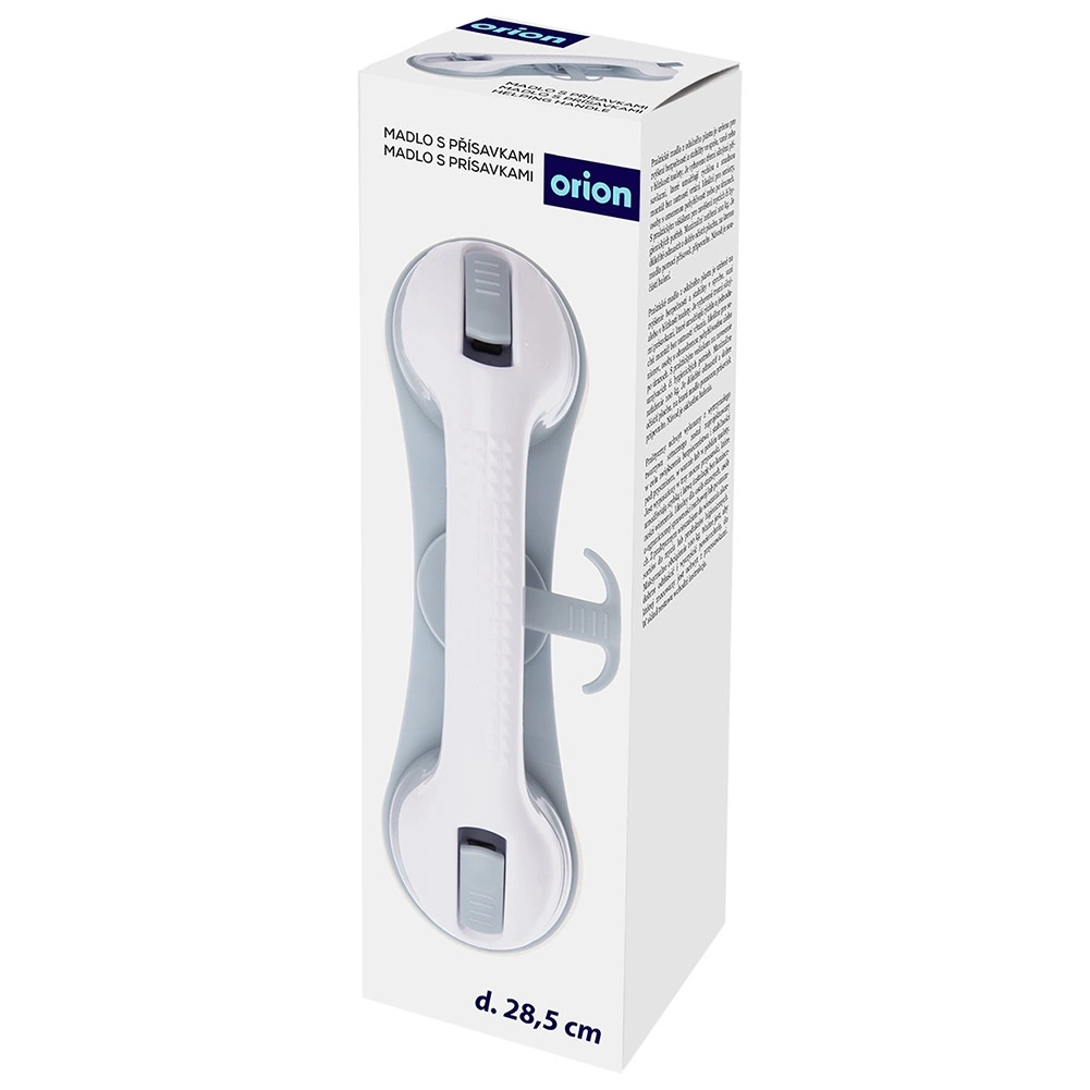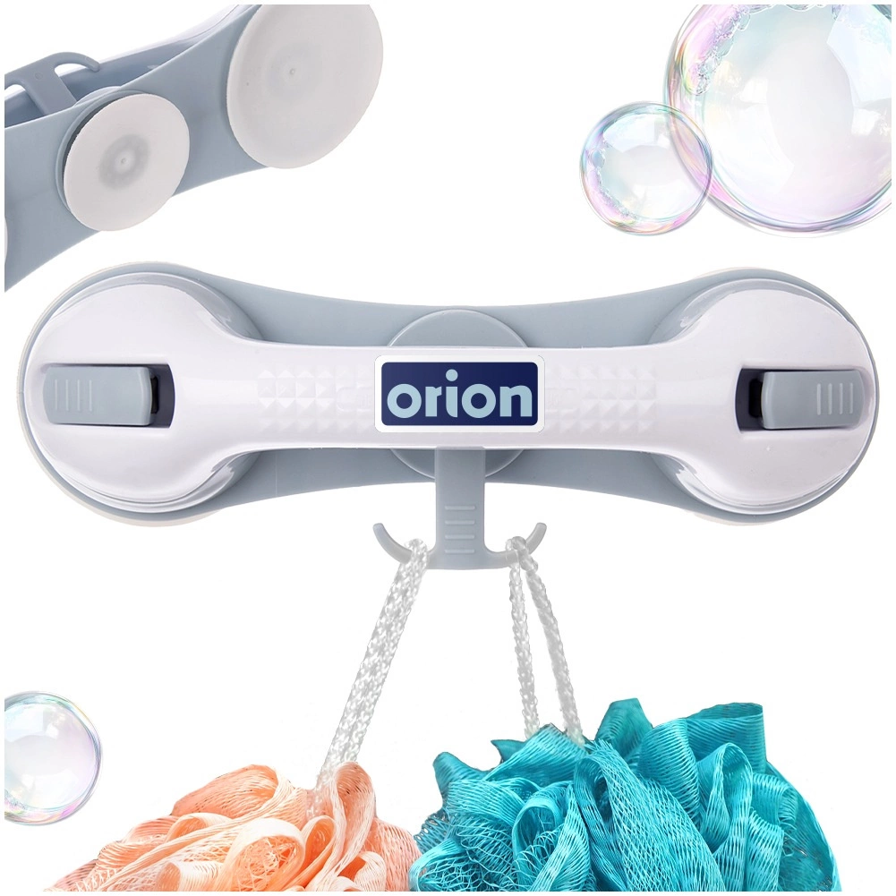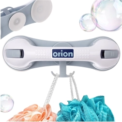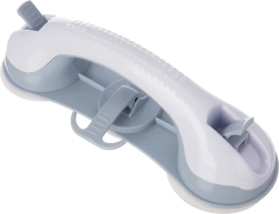 Praktische badkamerhandgreep met zuignappen voor extra veiligheid en stabiliteit onder de douche, bij het bad of het toilet. Montage zonder boren, drie sterke zuignappen, ergonomische greep en een praktische haak voor accessoires. Stevige en duurzame constructie van hoogwaardige, vochtbestendige kunststof. Snelle installatie op gladde, ontvette oppervlakken en de mogelijkheid om de greep op elk moment te verwijderen zonder de tegels te beschadigen.