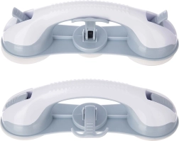 Drie krachtige zuignappen met hendels hechten stevig aan gladde, ontvette tegels of glas. De greep kan op elk moment eenvoudig worden losgemaakt en verplaatst zonder het oppervlak te beschadigen.