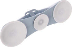 De robuuste behuizing van hoogwaardige kunststof in wit-grijs zorgt voor een stabiele en comfortabele greep. Drie sterke zuignappen houden stevig vast, terwijl de geïntegreerde haak plek biedt voor een spons of washand en de badkamer overzichtelijk houdt.