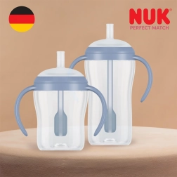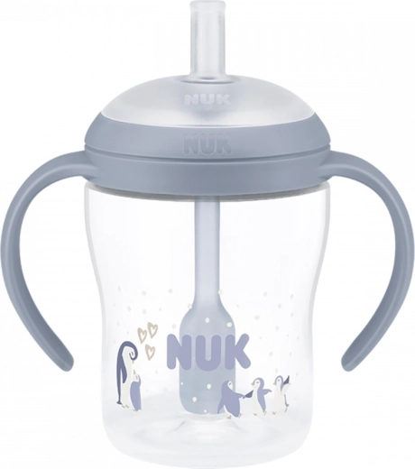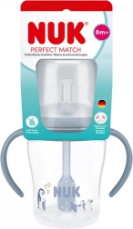NUK Perfect Match is een doordachte oefenfles voor kinderen vanaf ca. 8 maanden, die zelfstandig drinken ondersteunt en een soepele overgang van de klassieke fles naar de beker mogelijk maakt. Het zachte siliconen rietje is vriendelijk voor de mond en het tandvlees van het kind, terwijl de brede lipsteun de natuurlijke drinkmanier nabootst.