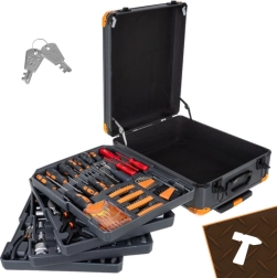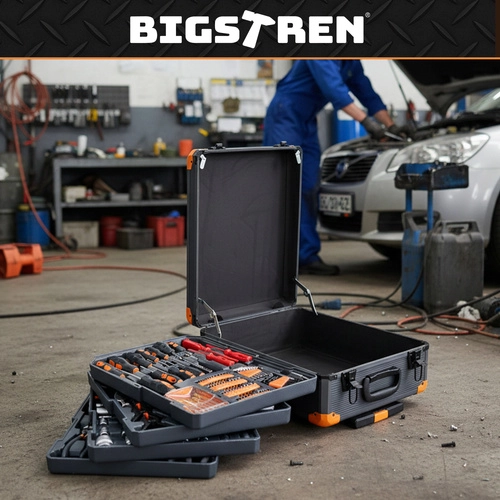 Zoekt u een universele en toch overzichtelijke uitrusting voor dagelijkse reparaties? Deze professionele BIGSTREN gereedschapsset combineert een rijke uitrusting (sleutels, doppen, bits, schroevendraaiers, tangen, accessoires) met mobiliteit dankzij de koffer op wieltjes. Alles is systematisch verdeeld over vier uitneembare inzetstukken voor snelle toegang.