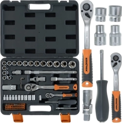Universele BIGSTREN gereedschapsset 72-delig in een stevige koffer voor werkplaats, huis en auto. Bevat ratels 1/4" en 1/2" met fijne 72T vertanding, een brede selectie doppen, bits en verlengstukken van CrV-legering voor een lange levensduur. De praktische koffer zorgt voor orde, overzicht en eenvoudig transport.