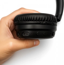 Zachte oorkussens en een gevoerde hoofdband zorgen voor comfort, zelfs tijdens lange luistersessies. Inklapbare scharnieren maken meenemen eenvoudig.