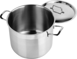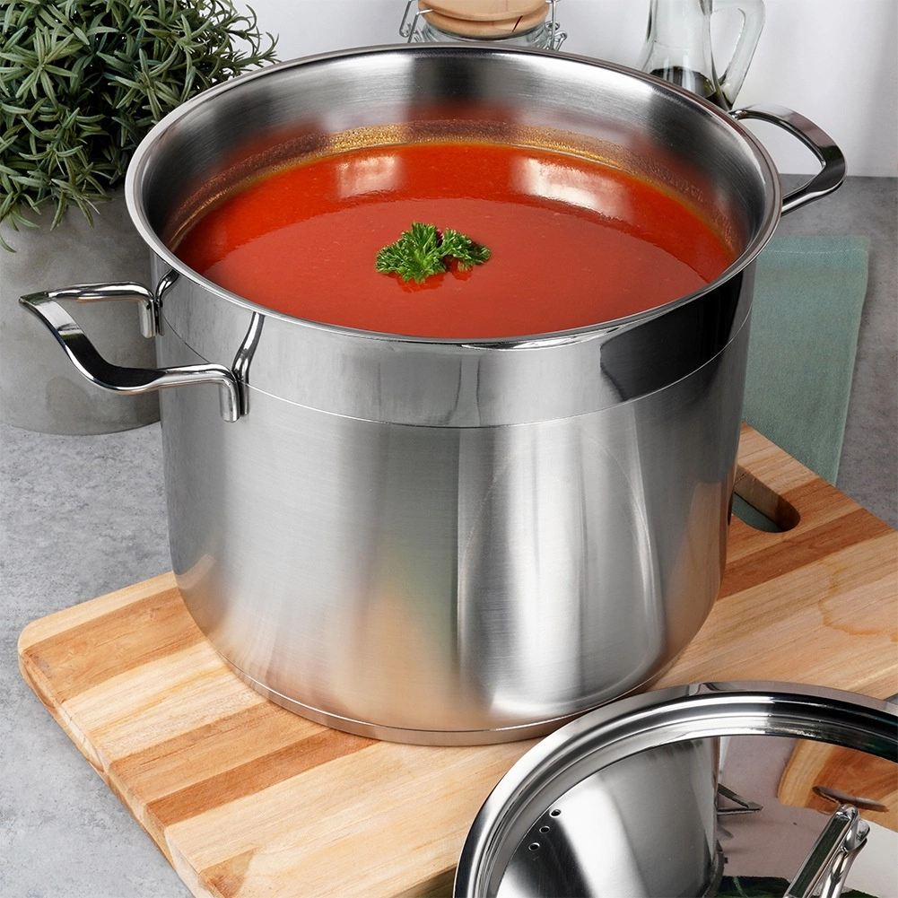Inclusief een precies passend roestvrijstalen deksel en comfortabele zijgrepen voor veilig dragen. Dankzij de doordachte vorm is de pan eenvoudig te reinigen en geschikt voor de vaatwasser. De diameter van 22 cm en een inhoud van 6,5 l maken hem tot een universele keuze voor soepen, sauzen, pasta en stoofgerechten.