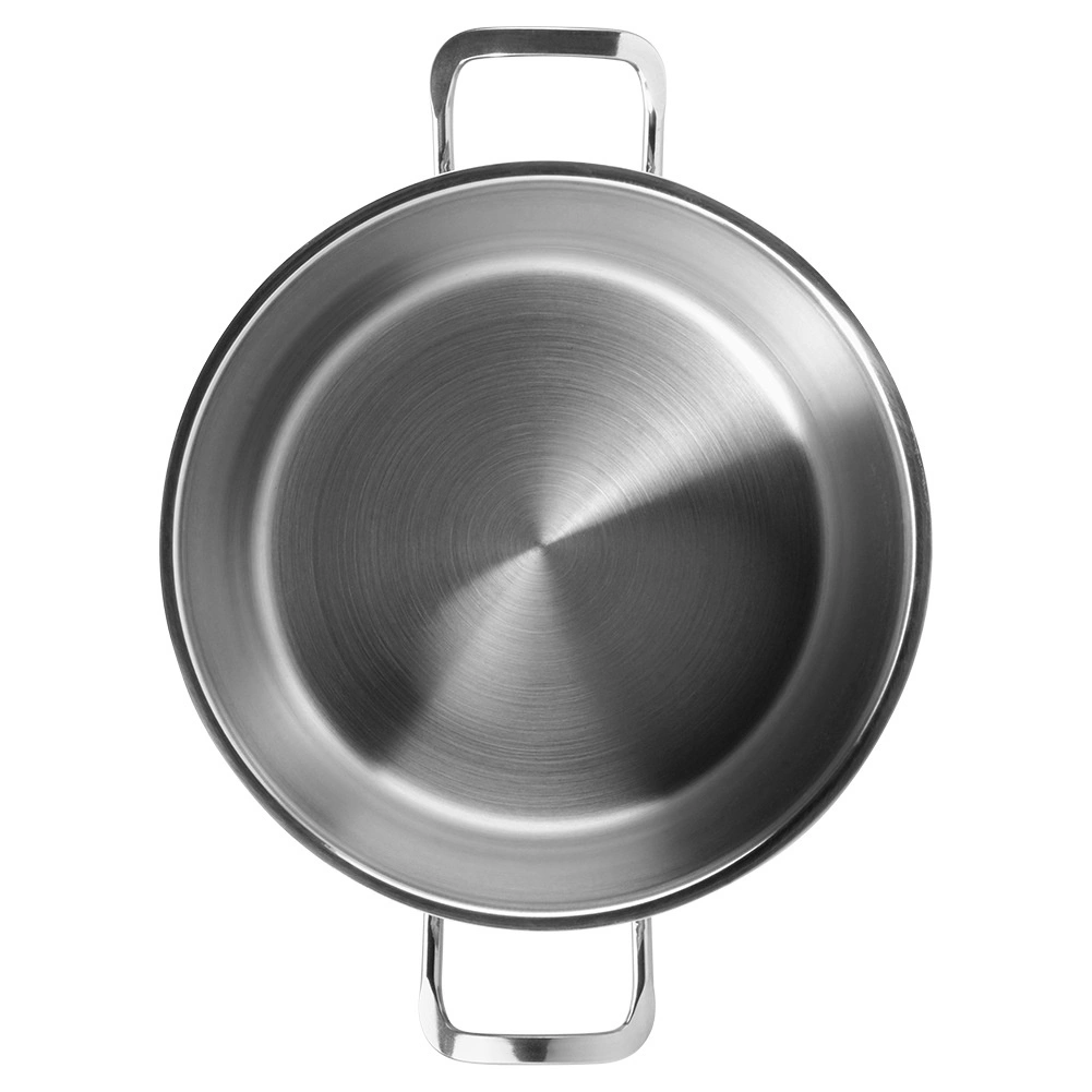 Deze robuuste pan van hoogwaardig roestvrij staal 18/10 in matte uitvoering met een elegante glanzende band aan de bovenkant is ontworpen voor veeleisend thuis- en professioneel koken. De meerlaagse acute-thermische bodem zorgt voor efficiënte warmteoverdracht, waardoor u sneller, gelijkmatiger en met een lager energieverbruik kookt.