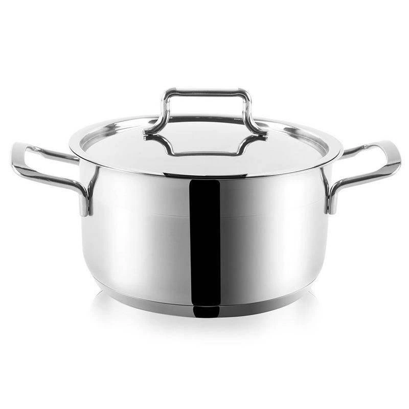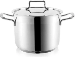De 12-delige roestvrijstalen kookset ANETT dekt alles af, van het opwarmen van sauzen tot het koken van bouillons. Hoogwaardig roestvrij staal 304 (18/10) met matte afwerking en een gepolijste decoratieve band garandeert een lange levensduur, hygiëne en een tijdloze uitstraling. De dikke wand en de meerlaagse bodem zorgen voor een gelijkmatige warmteverdeling zonder aanbranden.
