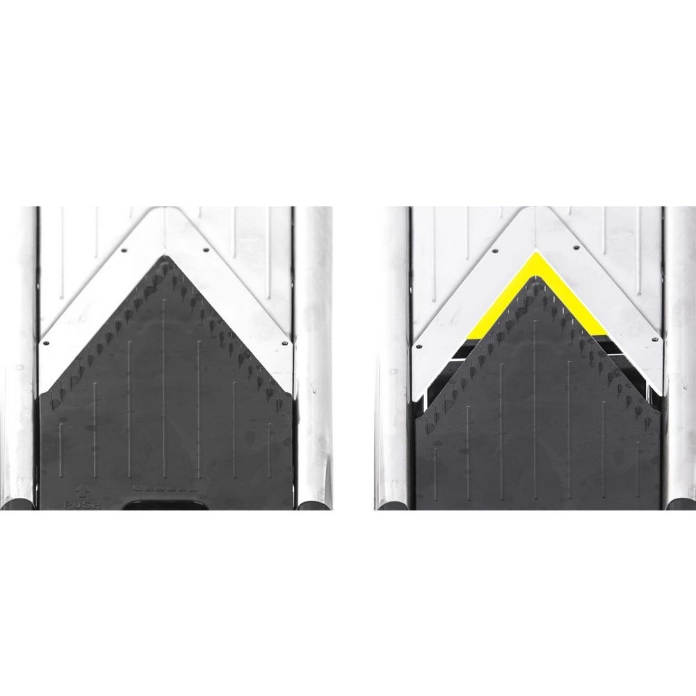 De beschermende houder beschermt de vingers en de inklapbare antislipvoetjes geven de mandoline een stabiele hoek voor snel en veilig werken.