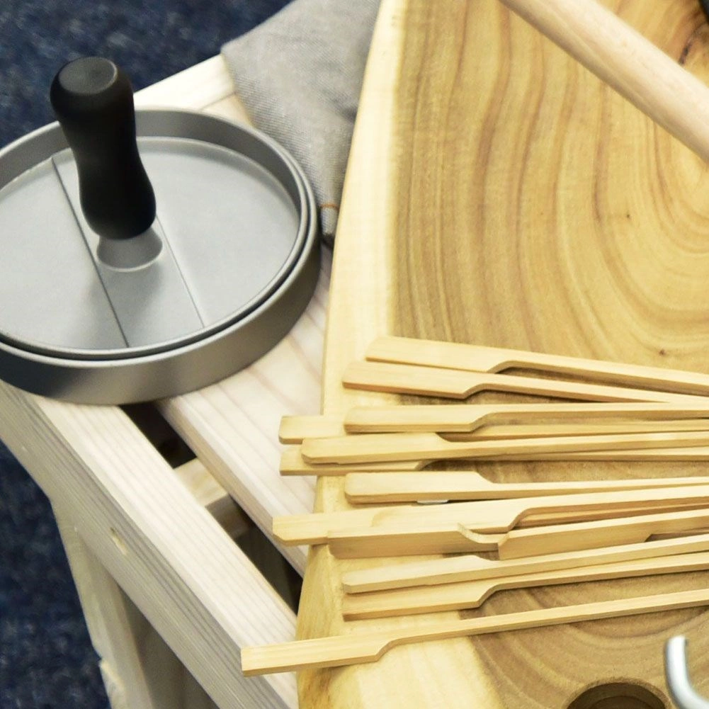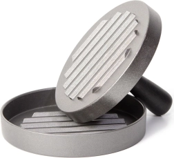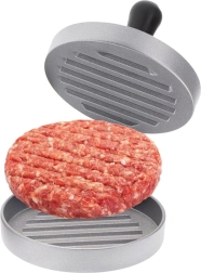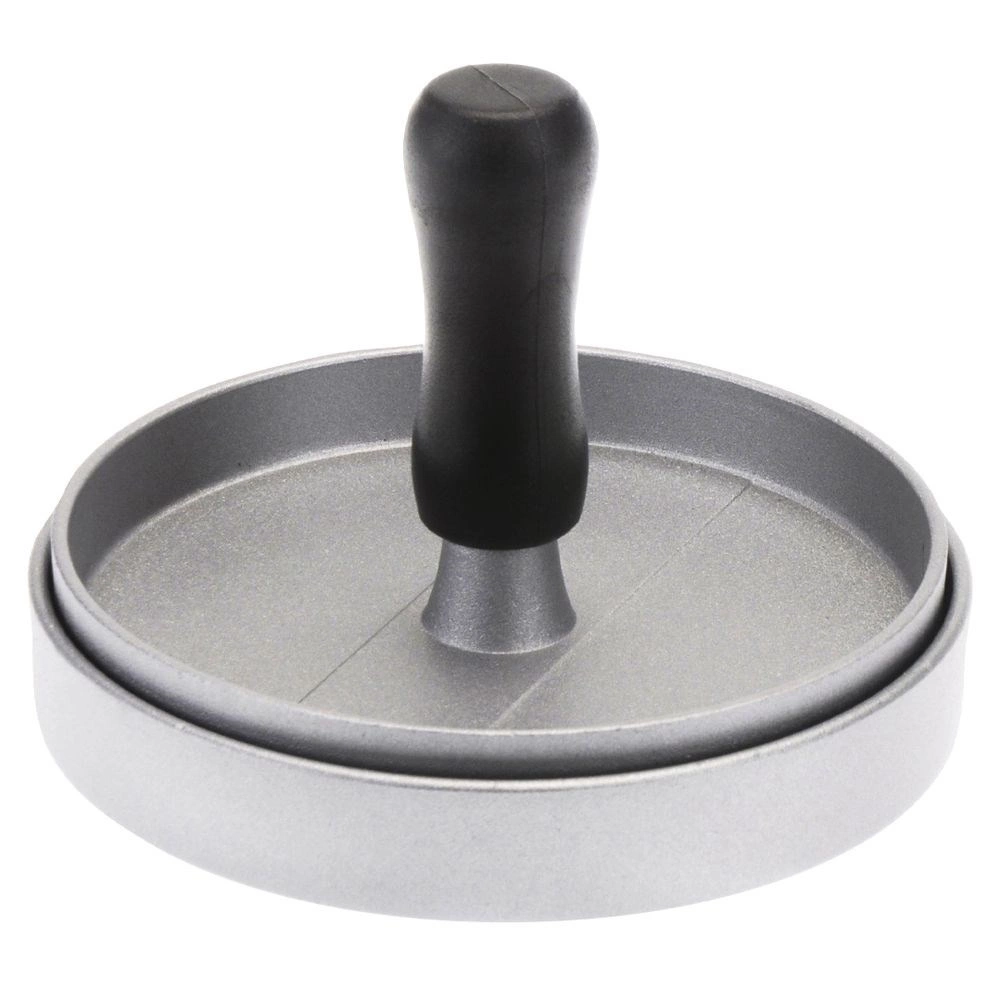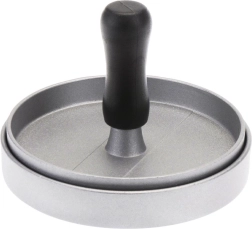 Praktische hamburgerpers met een diameter van 11,5 cm die van gehakt perfect vlakke en gelijkmatig dikke schijven vormt. Dankzij de robuuste aluminiumconstructie en ergonomische handgreep werkt u snel en comfortabel, met als resultaat altijd uniforme porties, een perfecte vorm en een consistente dikte voor gelijkmatige garing.