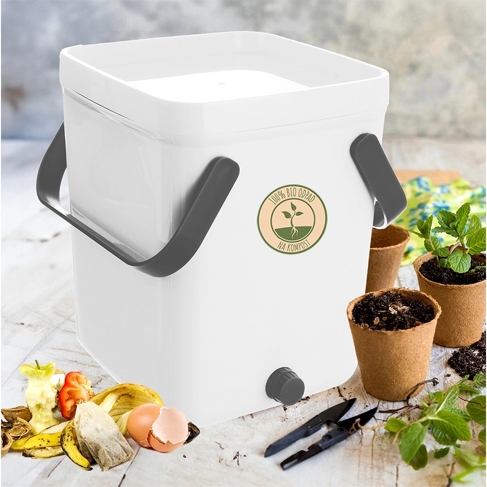De keukencomposteerder van 10 l is een ideale keuze voor zowel appartement als huis voor snelle en hygiënische scheiding van bioafval. Het anaerobe fermentsysteem beperkt geuren en versnelt de afbraak, terwijl de gevormde vloeistof zich verzamelt in het onderste gedeelte en na verdunning kan worden gebruikt als natuurlijke meststof.